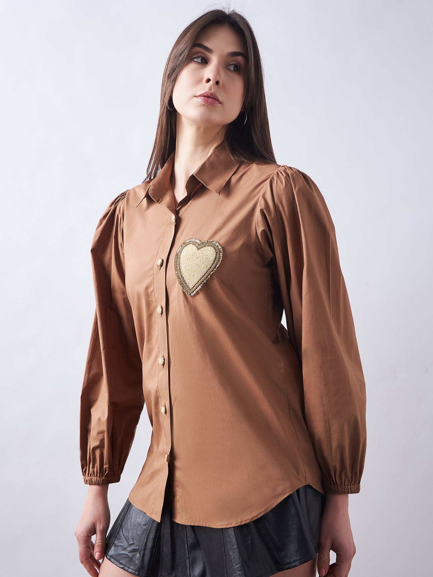 Featuring a Poplin Skirt Which is Emblished with Cream Heart Patch & Puff Sleeves.