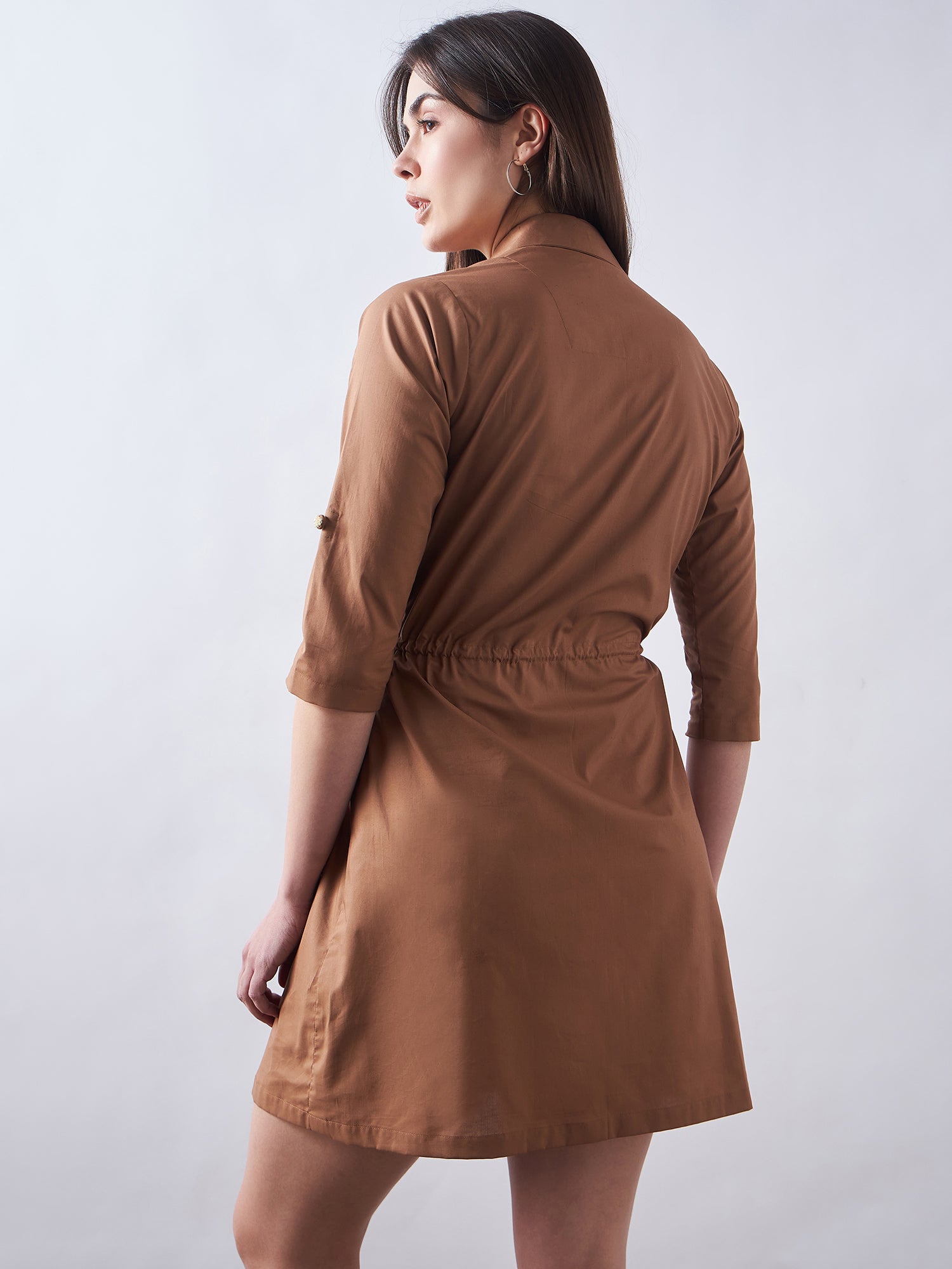 Brown Poplin Shirt Dress