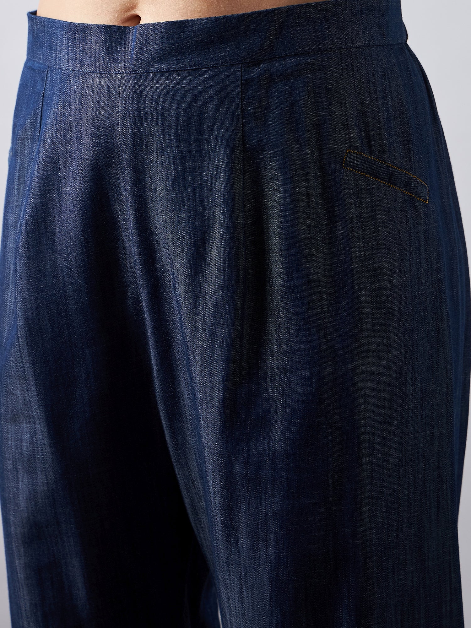 Featuring a Denim Co-Ords Which is Emblished with Embroiderd Dragon On Pants & on Crop Tops