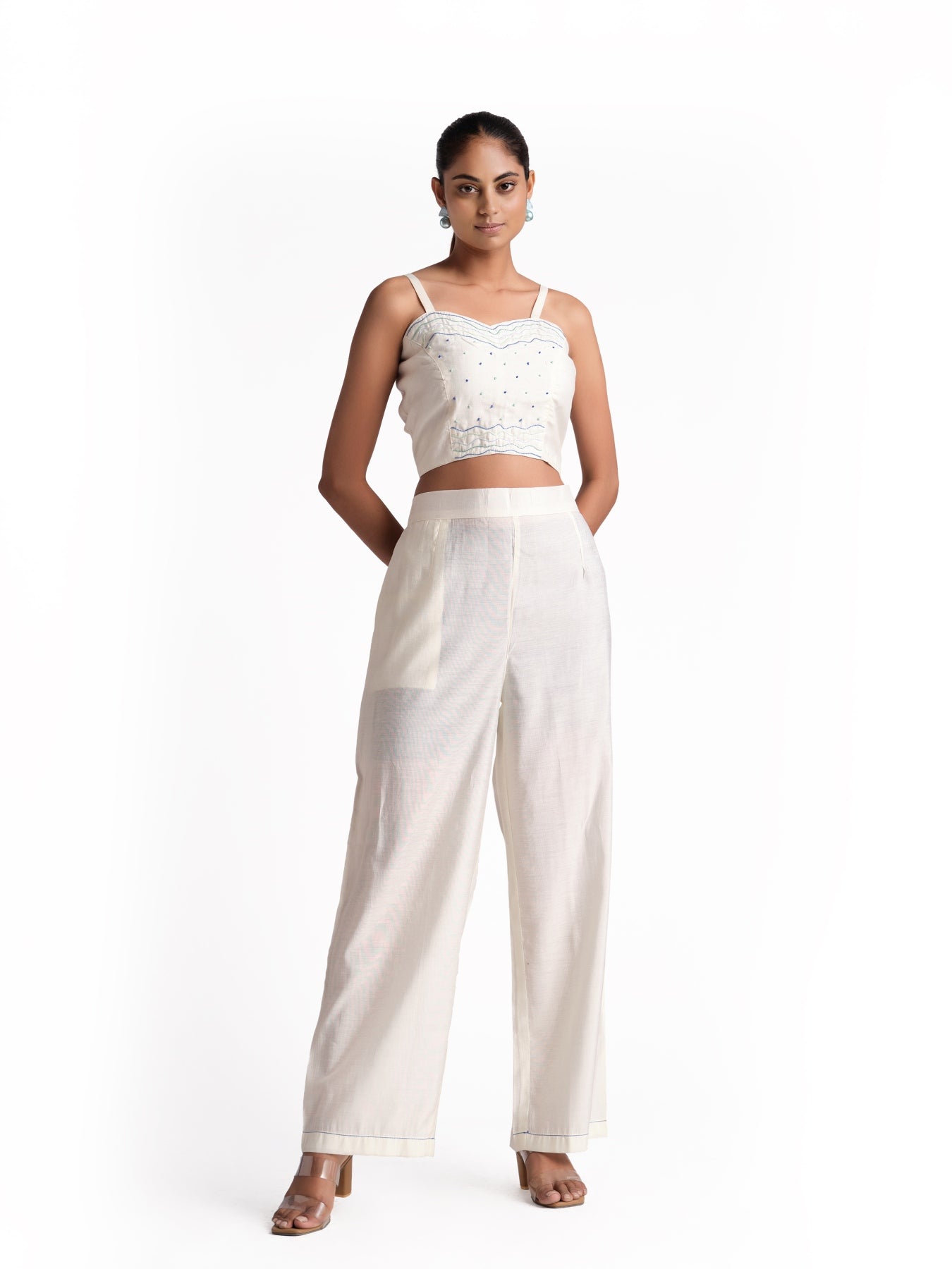 Featuring a White Drools 3 pcs Set Emblished With Wavy Handwork